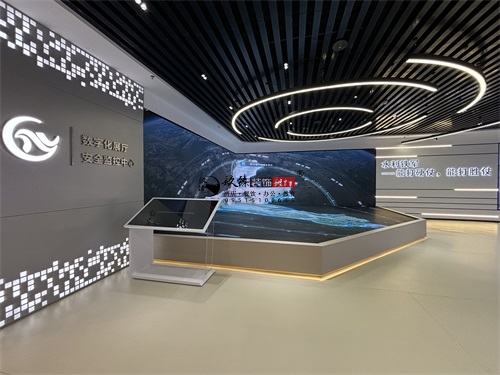 今天分享的是石嘴山水利水电办公楼装修设计实景照片,该水利水电办公楼装修设计风格,是银川装修公司镹臻团队擅长的“科技极简风+行业主题叙事”融合设计,既贴合水利水电领域专业属性,又通过现代空间语言传递工程科技的质感,核心关键词可归纳为“沉浸式科技感、主题化场景、极简工业肌理”。从办公楼装修空间基底看,银川筑臻延续了其标志性的“极简工业风”特质——顶面采用黑色竖向金属格栅+嵌入式环形灯带,既用硬朗的工业肌理呼应水利工程的“硬核”属性,又通过流线型灯光弱化冰冷感;地面选择浅灰色哑光地坪,既保证办公空间的整洁耐用,又以低饱和色调衬托陈列物品的视觉重心。