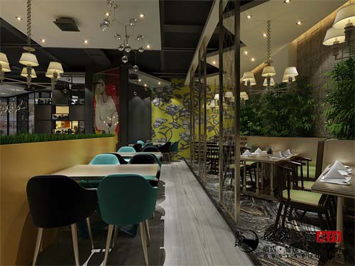 餐厅的环境氛围影响着我们的就餐心情,所以一个舒适优质的环境可以让顾客心情舒畅,更有食欲,在餐厅的设计中,要注重空间的合理布局,整体空间的色彩搭配,以及后期的软装搭配,完整系列的设计,会让空间更加和谐大气,鸿禧餐厅的设计理念就是打造一个舒适浪漫的就餐空间,所以在设计中,设计师添加了一些时尚文艺的元素,来突显空间的艺术品位,提升空间的整体档次,个性的吊顶搭配独特的灯具,空间视觉上更加丰富多彩,餐桌的摆放并不是那么的整齐划一,而是通过隔断柜体等进行划分,餐桌与餐桌之间有一定的间距,保证了顾客之间的隐秘性,餐桌随性的摆放,让空间有种自由、个性的文艺浪漫氛围,为了增加空间唯美的格调,餐厅的灯光设计会偏向温暖,时尚艺术的吊灯,温暖柔和的光线,让空间充斥着浪漫唯美的艺术格调。